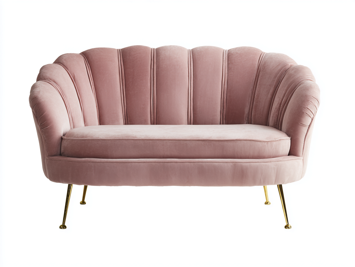 Der Bezug besteht aus weichem Samtstoff in Rosa, der eine angenehme Haptik sowie eine elegante Oberfläche bietet. Die stabile Innenkonstruktion sorgt für zuverlässige Stabilität im täglichen Gebrauch. Die schlanken Metallbeine in goldfarbener Ausführung verleihen dem Sofa eine moderne und dekorative Note.